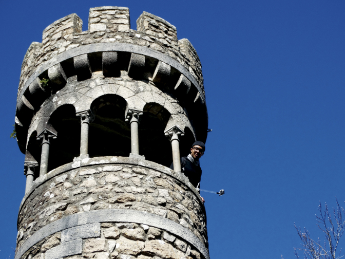 Despertarse temprano fue todo un reto pero valió la pena. Tomamos el tren a Sintra y mientras los cuatro morimos de sueño en el trayecto que dura casi una hora, pudimos por fin tomarnos de la mano y descansar. Lo que siguió fue una avalancha de información y castillos y dulces y esculturas y laberintos y túneles que conducían a otros túneles. Aún recuerdo la cara de los cuatro cuando, parados en la Quinta do Regaleira veíamos los detalles sobre la chimenea, la biblioteca, las torres de castillo y las plazas adornadas por esculturas de dioses griegos. El acuerdo casi implícito de visitarla toda nos llevo a invertir casi cuatro horas en el lugar, cuatro horas que nos dieron además, un regalo de esos que solo los viajes saben dar: un almuerzo con vista al mar sentados en la torre de un castillo.