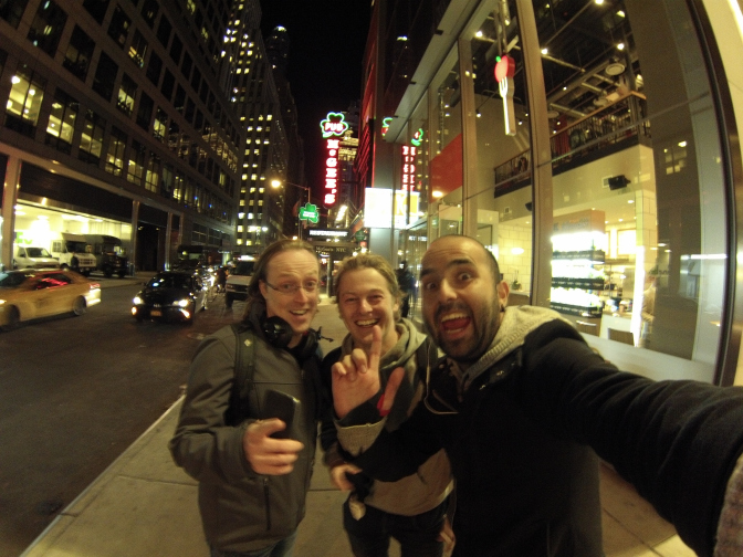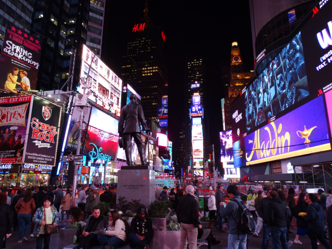 Nos separamos pues tú y yo queríamos ir con desespero a la famosa zona de Times Square. La boca simplemente se nos abrió, era de verdad impresionante la escena frente a nosotros. No usan siquiera alumbrado público en la zona dada la gran cantidad de luz que emanan las pantallas. Tiendas de tamaños impresionantes y colores, colores y publicidad entrando a millón por hora en cada pupila.